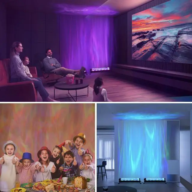 Dynamic Water Wave VisualWave Wall Light filled with light creates mesmerizing water wave effects and aurora projections. The light flows seamlessly, casting an amazing visual on walls and ceilings. This wall wash light transforms any plain surface into a stunning focal point, perfect for setting unique and captivating moods.