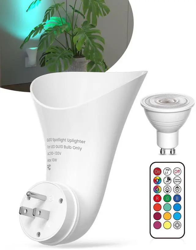 Plug in GU10 Wall Uplighter Lamp with Timer & Memory Function, Spotlights with GU10 Socket, Plugin Wall Wash Lamp with Remote Control, Indirect Lighting Inside (LED RGB Bulb Included)
