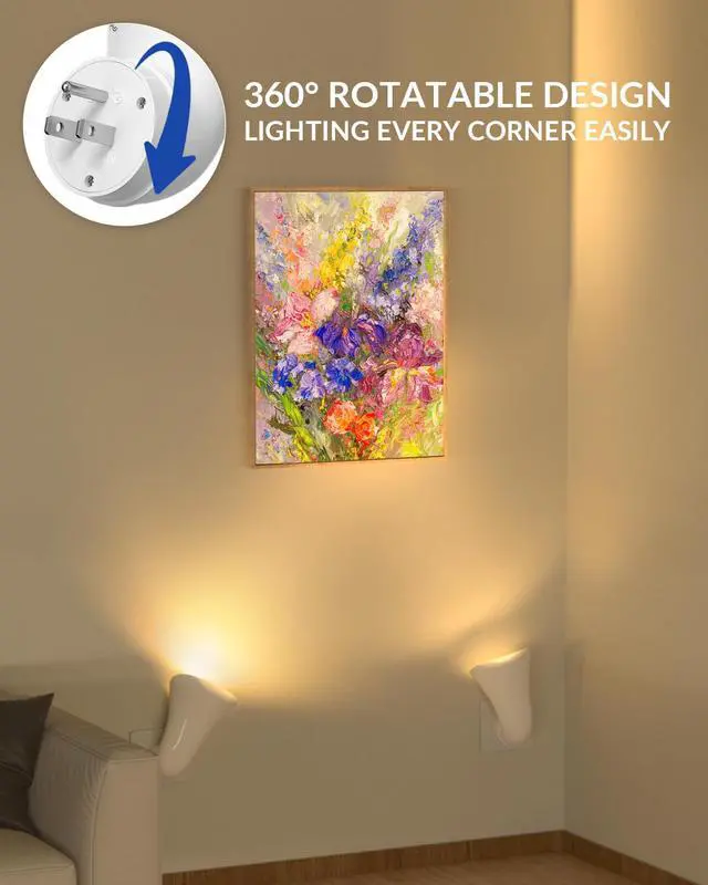 FLEXIBLE LIGHT ANGLE: The lamp with plug can be rotated 360 degrees freely. You can easily adjust the light direction to your needs. For example, in the living room, you can focus the light on a decorative drawing or plant to highlight the decorative effect.