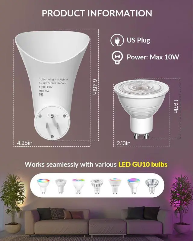 EASY TO USE: The GU10 Plugin light is equipped with a US plug. You do not need to buy an additional converter or power supply. Installation and use is easy and fast. Whether in the living room, dining room or bedroom, you can easily integrate it into your lighting system.