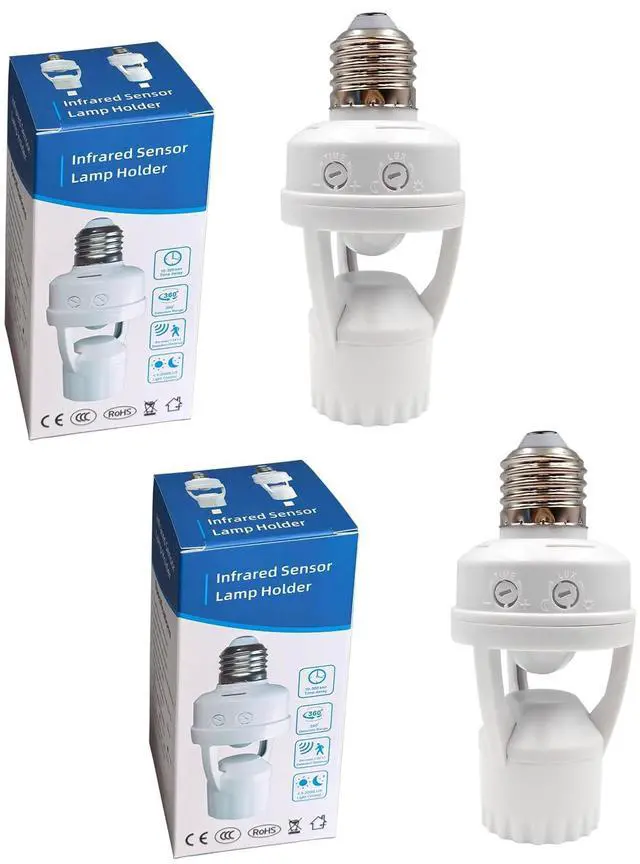 PIR Motion Sensor Light Socket, E26/E27 Smart Lamp Bulb Holder Adapter Auto On/Off Light Control Suitable for Garage Basement Porch Storage Room