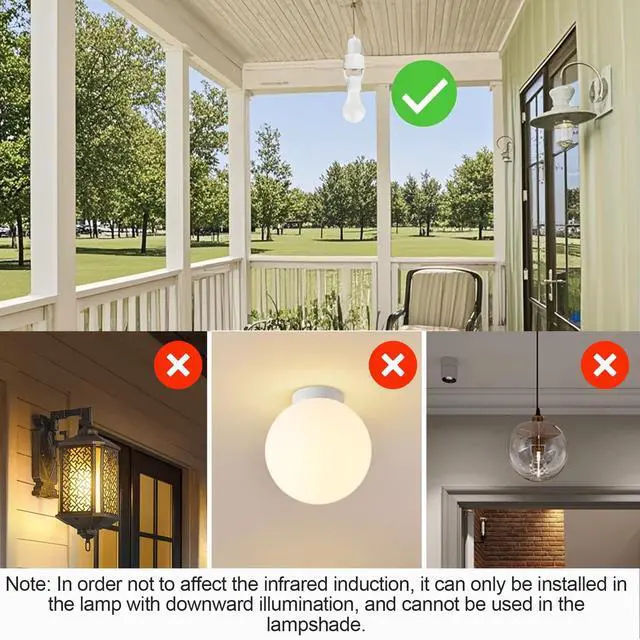 Please do not fix the socket into a closet lampshade or the glass shade will block the sensor. Can use it indoors only