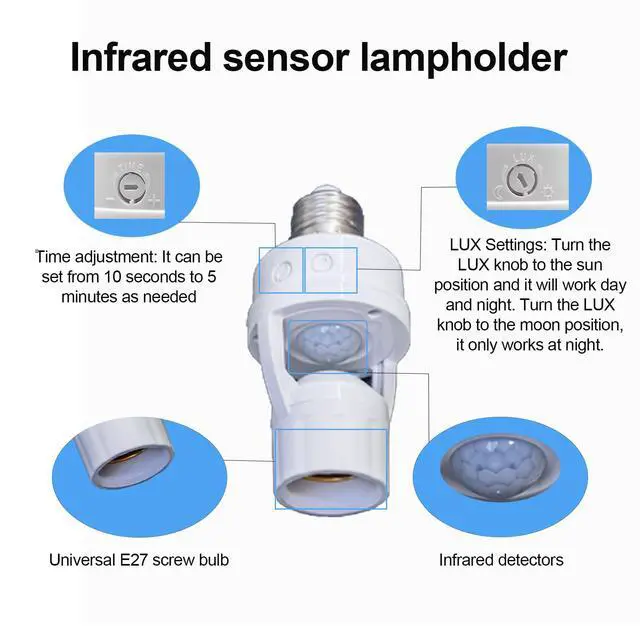The E26/E27 motion-sensing light socket screws easily into any existing light socket. The bulb will light up automatically when objects are detected to move by our motion sensor adapter in the dark environment, and turn off automatically after a period of continuous illumination. You don't need to look for switches in the dark and never forget to turn off the lights again. This motion-sensor light socket offers 360-degree motion detection and has a sensitivity range of up to 10 feet when mounted 8 feet above the floor