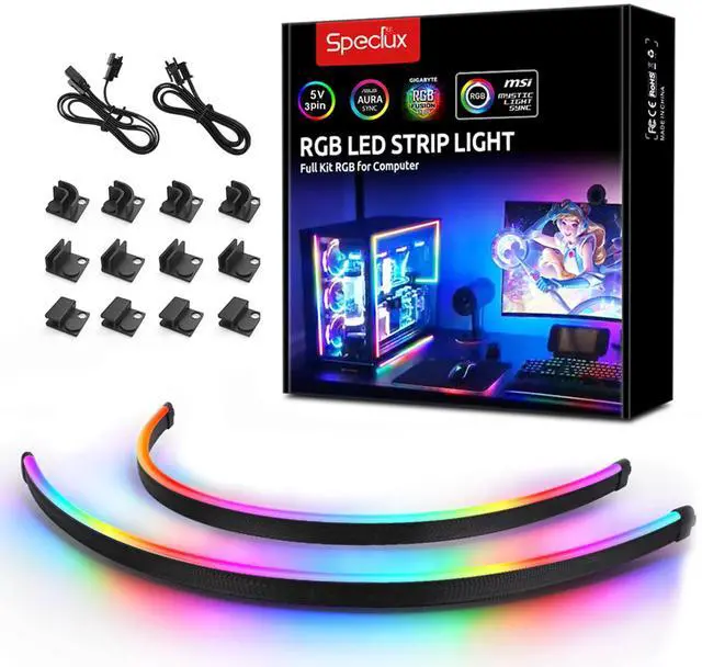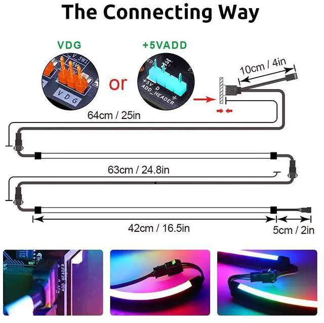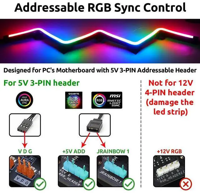 2pcs NEON Addressable LED Strip Light for ASUS AURA SYNC / Gigabyte RGB Fusion / MSI Mystic Light Sync Motherboard (5V 3-Pin ARGB LED headers ONLY)