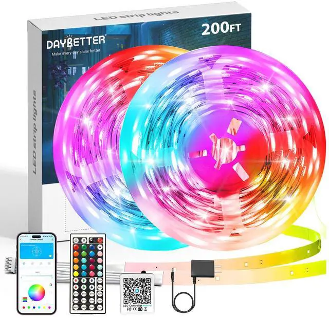 Smart APP and IR Remote Control: DAYBETTER LED lights for bedroom 200 ft are very easy to control via 44 keys ir remote control or smart app. There are 16 million colors available, different modes can be chosen, like Flashing, Quick, Jump, Fade, etc. which can enhance the beauty of your room decor aesthetic