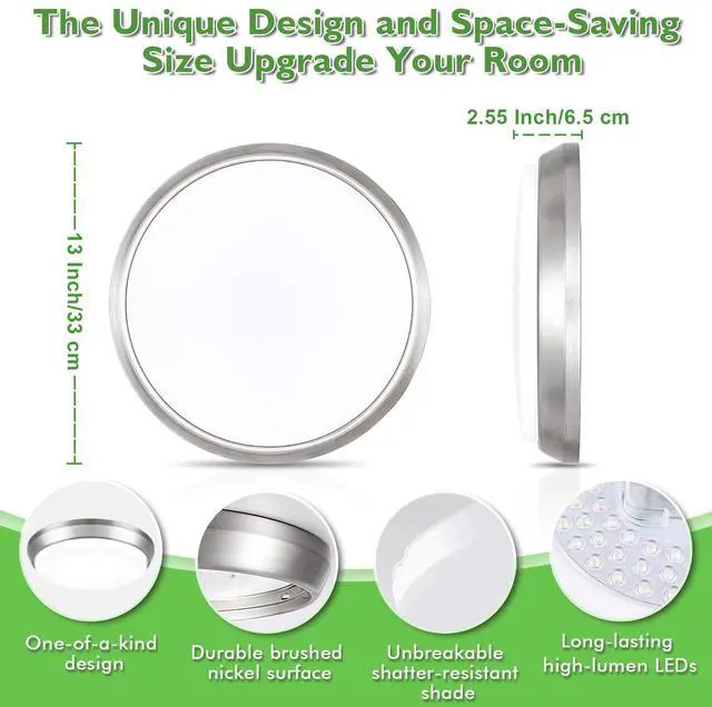 The 13 inch ceiling light uses advanced LED technology and is strictly checked to ensure no flash or glare when it works.
