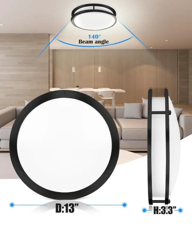 This ceiling light with a 80+ high CRI rating has a more natural and accurate light output that will rendering closely the true color of the objects. It will providing more accurate and vivid lighting for your space, and make your surrounding environment clearer, brighter and as close as possible to the natural environment.
