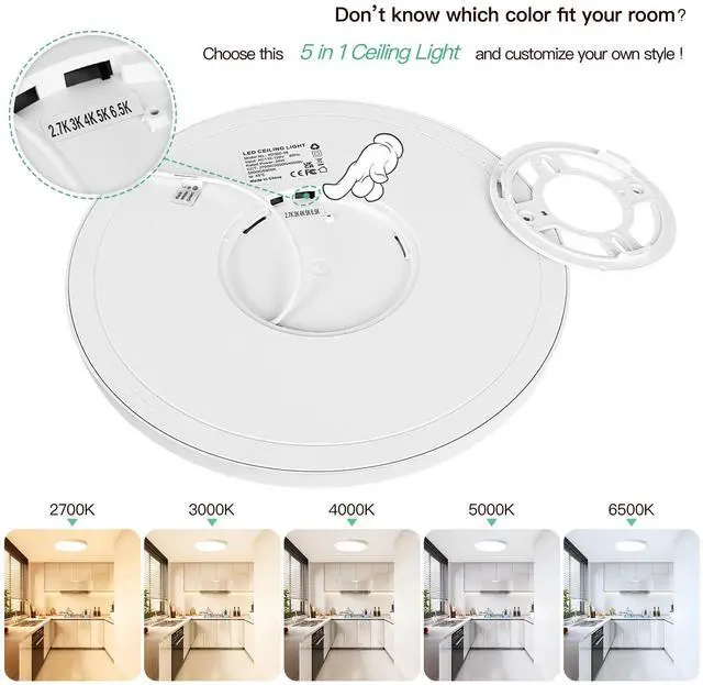 Beightever 24W 12 Inch 5CCT Led Ceiling Lights are big improvement based on normal Ceiling Light Fixtures!