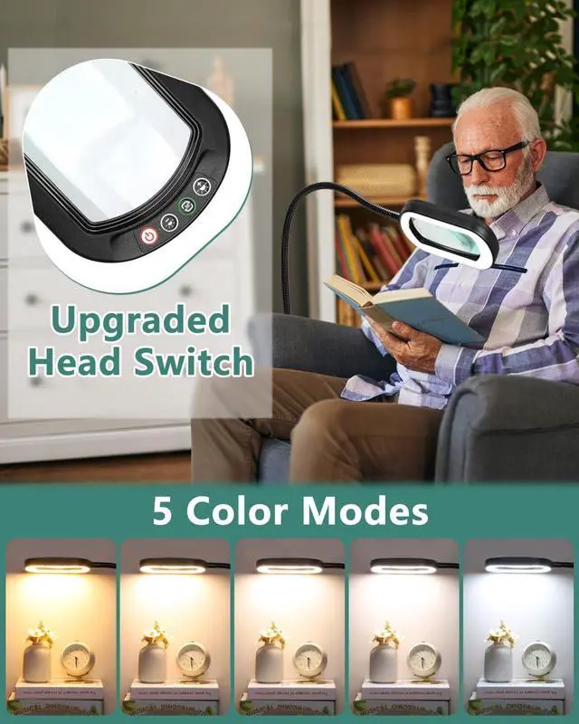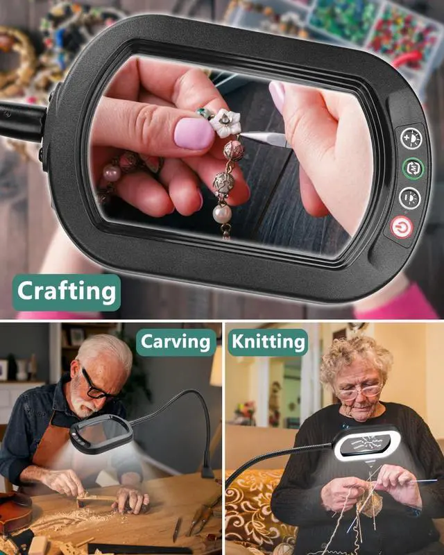 This 3-in-1 magnifying floor lamp adapts to your needs with a flexible 24-inch gooseneck for precise positioning, and it easily transforms into a clamp light for various workspace setups. Its detachable metal pole allows for adjustable heights, while the sturdy base ensures stability. Ideal for hobbyists, professionals, and home use, it’s the perfect blend of function and versatility.