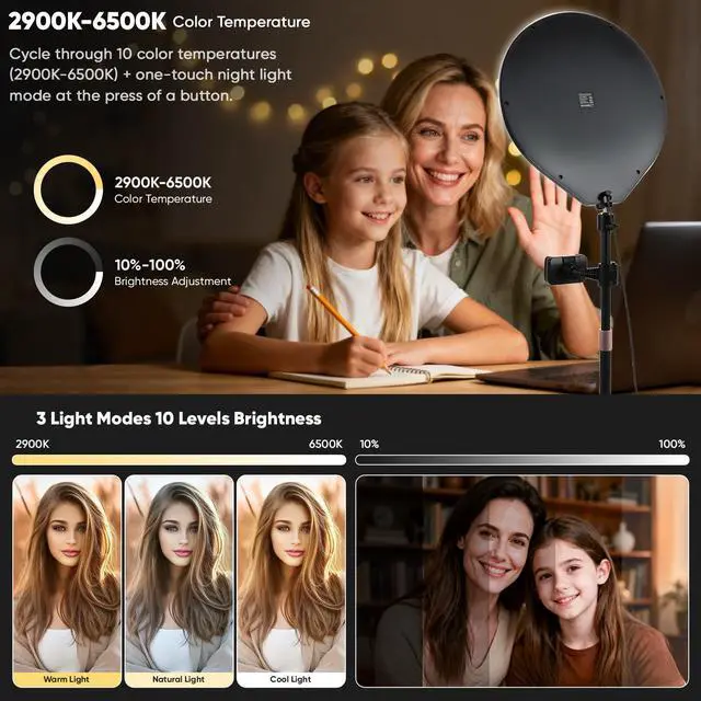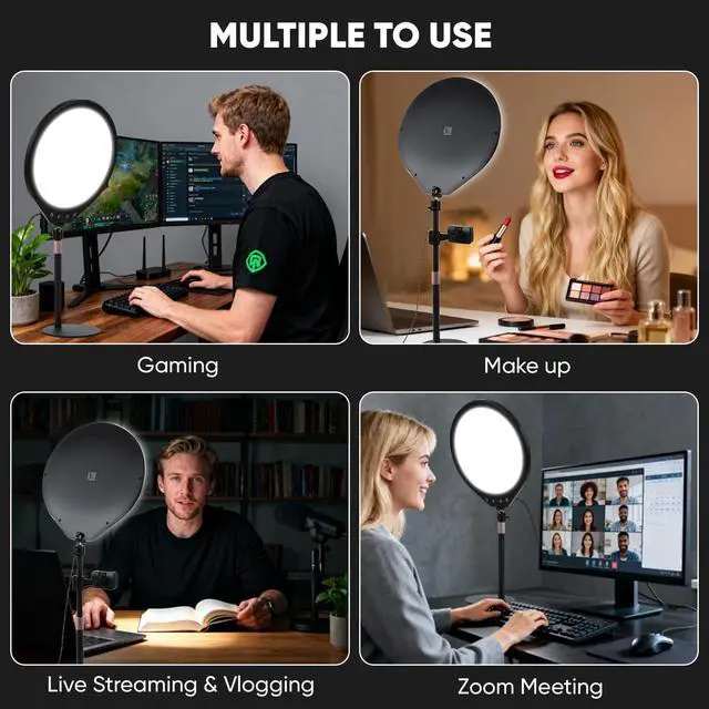 Larger 12" Ring Light with 120 Professional-Grade LED Beads: Our larger 12" full-screen light and side-emitting technology provide unparalleled soft and even lighting without glare, the desktop ring light is perfect for zoom lighting for computers, video recording, live streaming, vlogging, podcasting, makeup, blogging, video calls, TikTok, YouTube, photography, etc