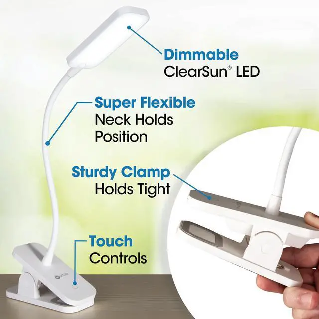 Dimmable LEDs & Sturdy Clip: This lamp features touch-activated control with dimmable LEDs simply press and hold to dim or brighten. The sturdy spring-loaded clip holds surfaces up to 1.75 inches thick.