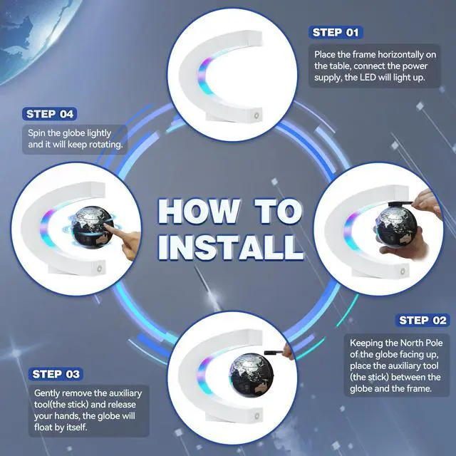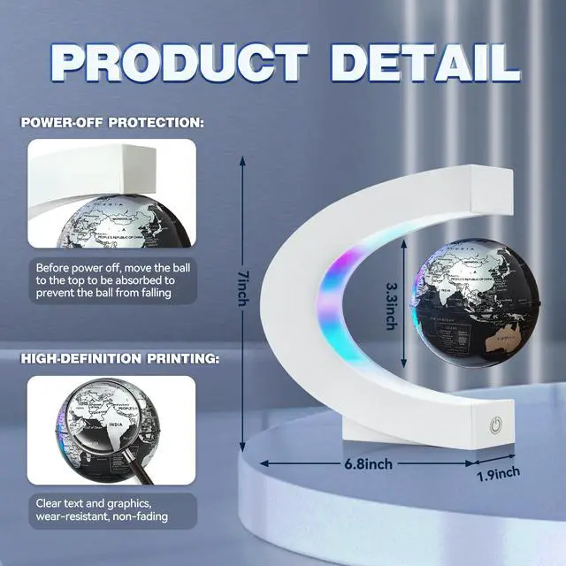 From the desk to the living room, classroom, library, or study, the floating globe adds a sense of calm and inspiration wherever it stands. Its gentle rotation and soft glow create a soothing atmosphere that sparks curiosity and brings a touch of modern elegance to any environment.