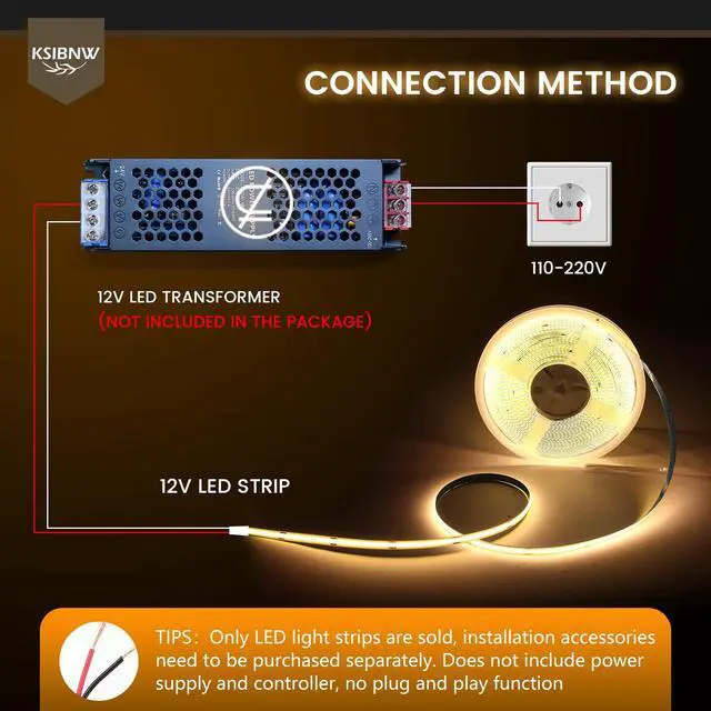 KSIBNW 12V COB LED Strip Lights Flexible LED Tape Light Under Cabinet Lighting