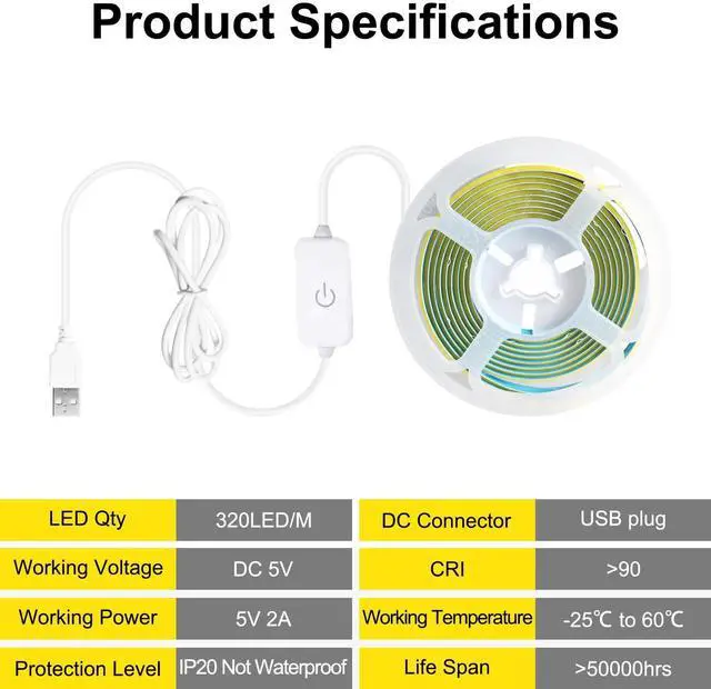 ![]() 3.28ft COB LED Strip | ![]() 6.56ft COB LED Strip | ![]() 16.4ft COB LED Strip | ![]() 3.28ft COB LED Strip 2Pcs | ![]() 6.56ft COB LED Strip 2Pcs |