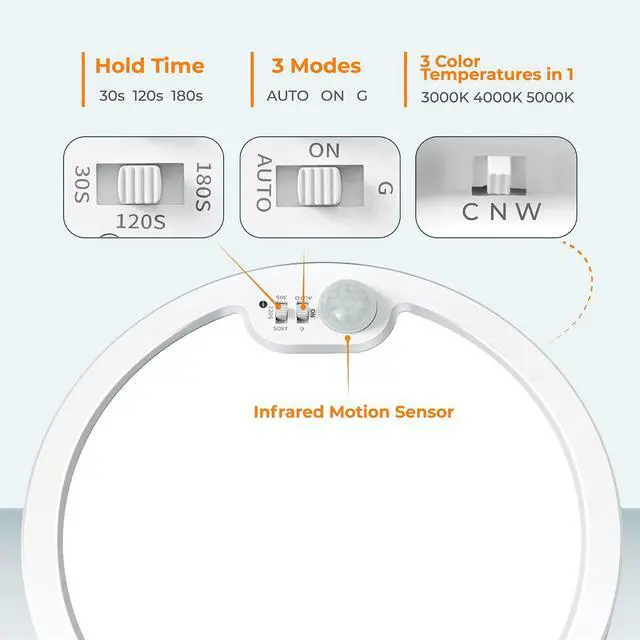 | Type | Infrared Motion Sensor, Light Sensor, 3 CCT | Infrared Motion Sensor, Light Sensor, 3 CCT | Wireless Motion Sensor, Light Sensor, 3 CCT | 3000K 4000K 5000K Selectable | 3000K 4000K 5000K Selectable | 2000K,3000K~6500K Adjustable |