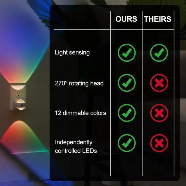 Directional Swivel Rotate the adjustable night light head 270° to point the LEDs in the direction you want