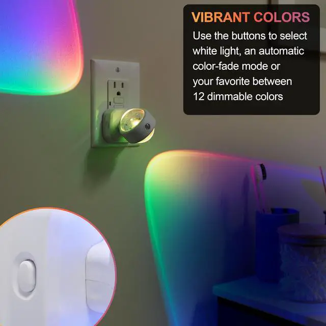 Swivel Sconce LED Night Lights Plug Into Wall for Home Decor Color Changing Dimmable Rotating Dusk to Dawn Sensor, Ambient Lighting, Apartment Essentials 1 Pack 81041