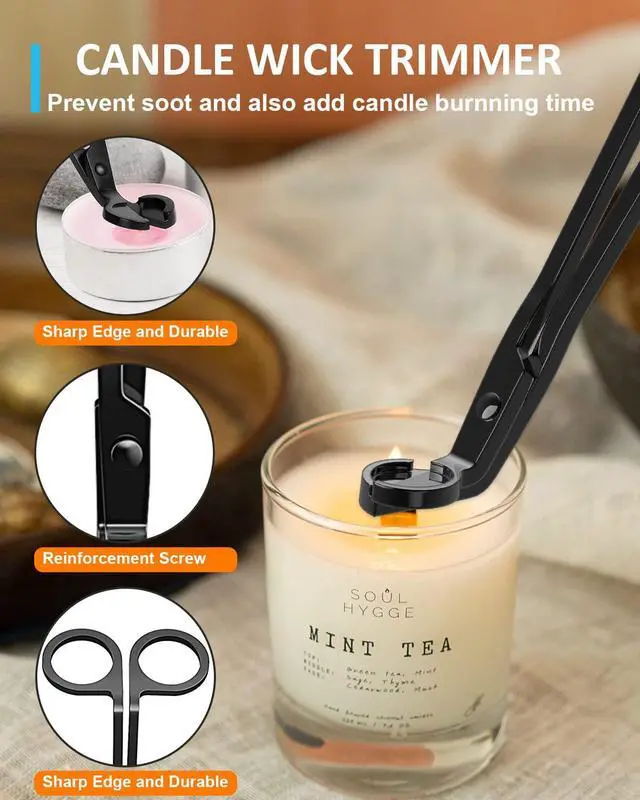 Polished Stainless Steel Candle Wick Trimmer is an essential tool for candle lovers. It helps to trim the wick of your candle to the perfect length, which in turn prevents the wick from becoming too long and creating smoke.