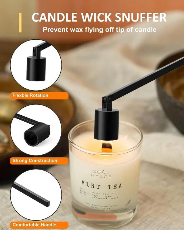 Candle Snuffer Extinguisher is also an essential tool that helps to extinguish the candle flame without blowing wax all over the place.