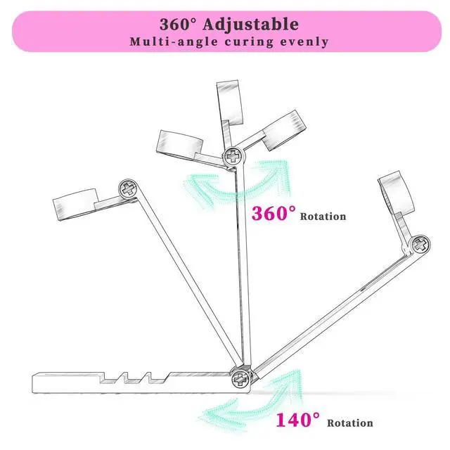 - Adjustable Rotation: You can simply adjust the uv nail lamp angel for precise curing by its 360° rotation components.