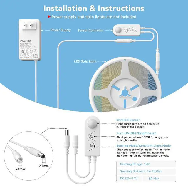 | Features | Infrared Motion Sensing, Dimmable, Power-off Memory Function, Dual Mode |