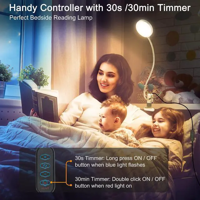 Desk Lamp for Bed Headboard with 1 or 30 Minutes Timer