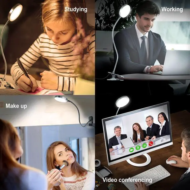A beautiful, simple and popular USB clamp makeup lamp that can clip on wherever, such as Dressing table, bathroom sink, bedside table, bunk bed headboard.
