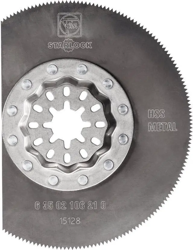 High Speed Steel (HSS) blade for fiberglass, carbon fiber, 20-gauge sheet metal, and harder woods. Segmented to cut right angles without over-cutting. This blade is flat. Fein blades fit most oscillating tool brands.