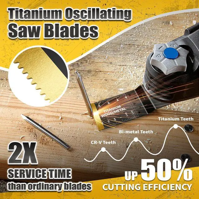 | 1 × Titanium saw blade | 3 × Titanium Saw Blades | 4 x 1-3/8inch Titanium blades | 1 × Carbide Saw Blade | 10 × Japanese Tooth Blades | 3 × Hook Knife Blades | 3 × Carbide Blades |