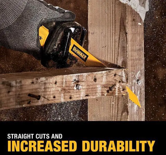 Up to 50% longer life*: patented tooth forms optimize chip removal for efficient cutting and long life. *average performance of DEWALT reciprocating saw blade range vs. prior generation DEWALT blades.