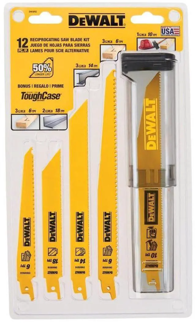 Reciprocating Saw Blade Set for Metal Wood Iron, 12 Piece Bi-Metal Increased Durability Blades, with Storage Case (DW4892)