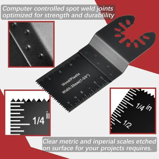 Length marks on both sides of the multitool blades with inch and centimeter, ensure you will get accurate cut when you use our multitool blades.