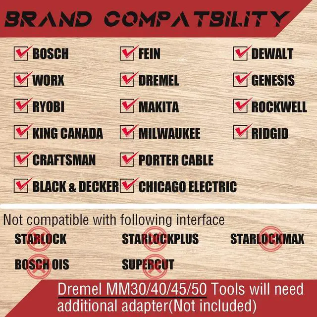 Adust multi tool blades are compatible with most brands of oscillating tools, such as Dewalt, Fein Multimaster, Ryobi, Milwaukee, Hitachi and More