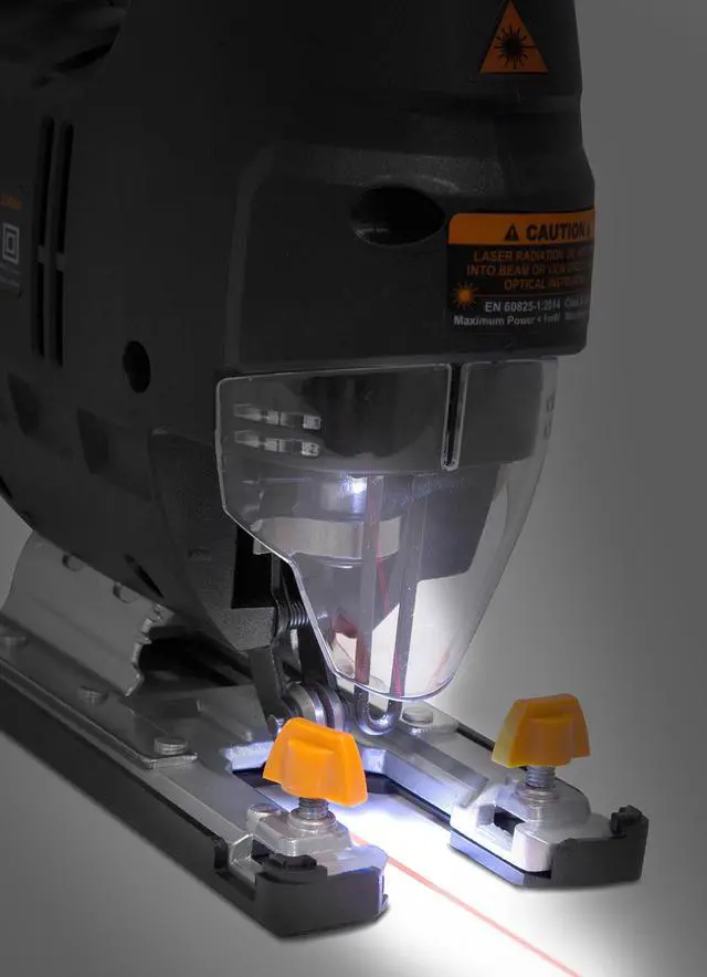 Keep your cuts on the straight and narrow with the front-mounted light and laser.