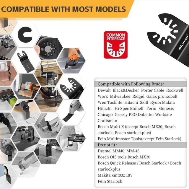 Universal Fit & Easy Swap: Compatible with DeWalt, Milwaukee, Ryobi, Makita, Worx, Wen Rockwell, and more, these multitool blades fit most oscillating tools on the market. The quick-change design lets you swap blades in secondsno extra tools needed! these oscillating saw blades lock in securely for vibration-free precision. Say goodbye to wobbling or loose attachments!
