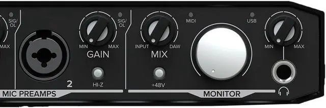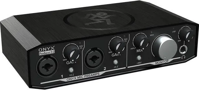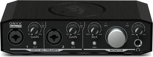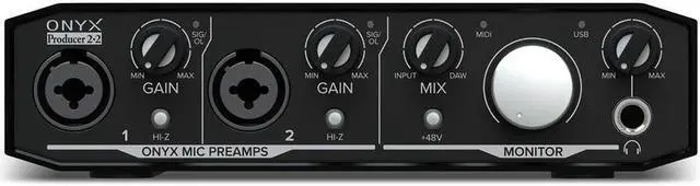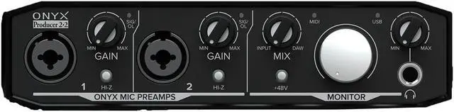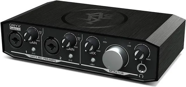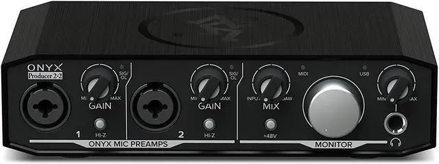 Combining high-resolution 24-bit/192kHz converters with premium Mackie analog circuit and Built-LikeA-Tank hardware design, the bus-powered Onyx Producer 22 is perfect for home studios, mobile recording, and dual mic applications. Featuring two XLR/TRS combo inputs with Onyx mic pres, each is equipped with phantom power and Hi-Z instrument switches for maximum versatility. Plus, with zero-latency direct analog monitoring ensures you can always hear yourself in real time. It also has built-in MIDI I/O for controllers, synths, and more. With the Onyx Producer 22, you have the power to capture your performance and experience media with pristine fidelity at home or on the go.