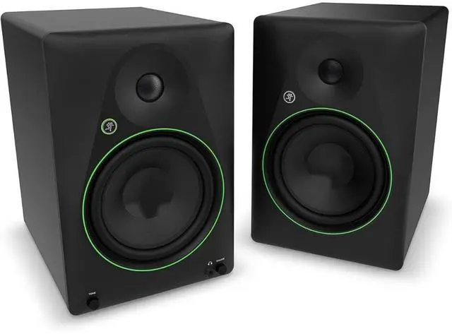 Mackie CR8BT, a pair of Creative Reference 8" Studio Monitors offering a compact solution for quality audio playback in home studios, gaming setups, and social listening events. The monitor design features an active speaker that powers the passive satellite. With 70W (per speaker) of amplification driving the 8" woofers and silk-dome tweeters, the CR8BT monitors provide full-frequency playback with plenty of volume to fill your studio or living area. With a selection of inputs, Bluetooth audio streaming, and switchable Desktop and Bookshelf modes, the CR8BT speakers provide clear and powerful sound in any space. The onboard tone control provides transparent, studio-quality sound and can add more excitement with optional hyped bass and added sparkle. Whether youre using them for business, pleasure or both, Mackie CR8BT may be the only speakers you ever need. Bundle with On-Stage SMS6000-P Studio Monitor Stand, Auralex Acoustics Monitor/Speaker Isolation Pads MoPAD XL, Hosa Stereo 1/4" Male Phone TRS Cable 10.