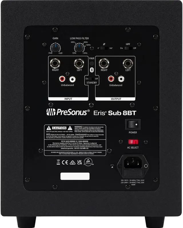 The Eris Sub 8BT also features onboard controls for effortless creation of a 2.1 monitoring system, and tuning to your room. The highpass filter and lowpass filter (crossover) controls ensure the subwoofer starts working at the precise frequency where your main monitors stop, avoiding any low-end distortion.