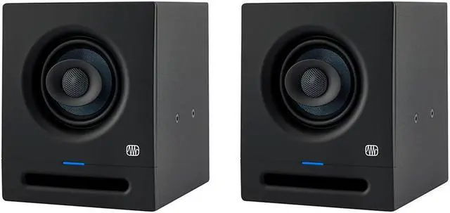 It is the PreSonus Eris Pro 4 4.5" 80W 2-Way Active Coaxial Studio Monitor that stands out with its innovative single point-source coaxial design, ensuring clear and accurate sound reproduction. This advanced design offers superior phase alignment between components, delivering a wide sweet spot, precise stereo imaging, and symmetrical dispersion patterns. These features make it an ideal choice for Dolby Atmos immersive rooms as well as traditional stereo mix environments. The Eris Pro 4 excels in providing finely detailed transient response and stunning dynamics, resulting in a natural and less fatiguing listening experience.