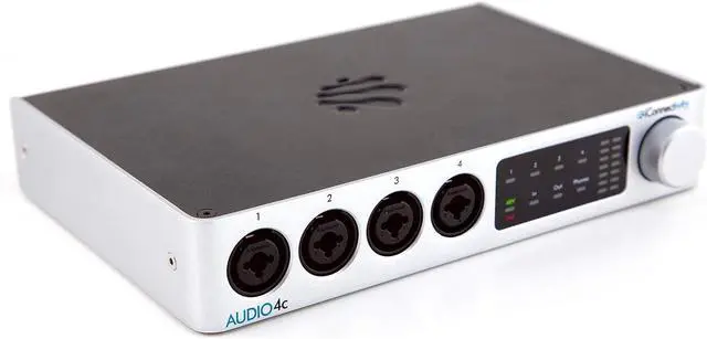 Incorporate multiple computing devices as sound sources, or live audio processors. IncorporateDAW sequencers into your set with our famous MIDI processing and connectivity. Simply hit the Play button in Auracle, and AUDIO4c becomes your portable, performancepowerhouse! A Recording Studio in your BackpackAUDIO4c packs a whole lot of analogue I/O, MIDI, and computer connectivity packed into oneportable package. Its like having your own studio you can chuck into a backpack, anywhere youmight be. Dont let the compact size deceive you though. AUDIO4c is more than mighty enough to do theheavy lifting in your project studio. Hit Auracles Record button and enjoy the power our flexibleworkflow brings to your recordings.