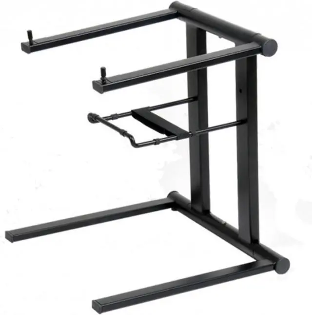 * Stable, rugged multi-purpose laptop stand for use by DJs, with additional tray for audio interface