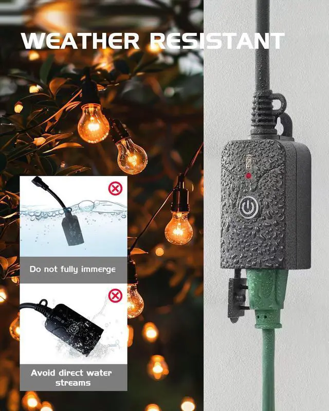 - Please place the plug at least 2 feet off the ground with the plug pointing straight down to avoid water damage.