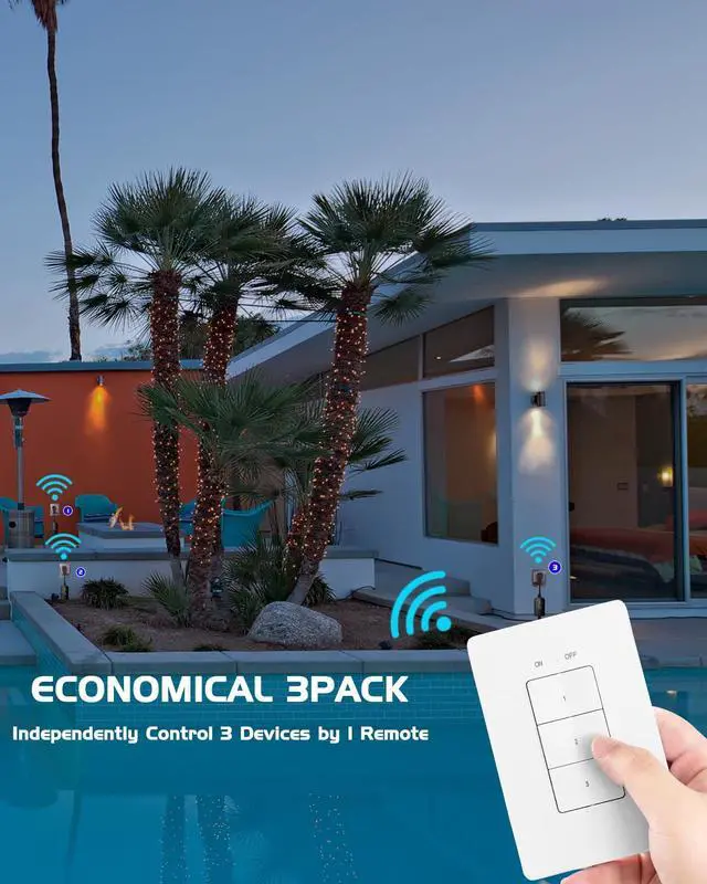 Wireless Remote Control Outlets (3 Pack Receivers & 1 Remote Set) Outdoor & Indoor