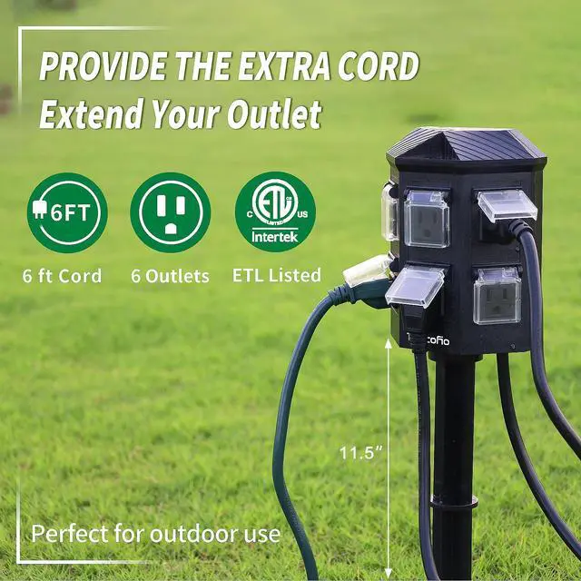 TiFFCOFiO Outdoor Power Stake Timer, 100FT Remote Control, Dusk to Dawn Christmas Light Timer, 6FT Extension Cord Waterproof, 6 Grounded Outlets for Outdoor Christmas Decorations, ETL Listed