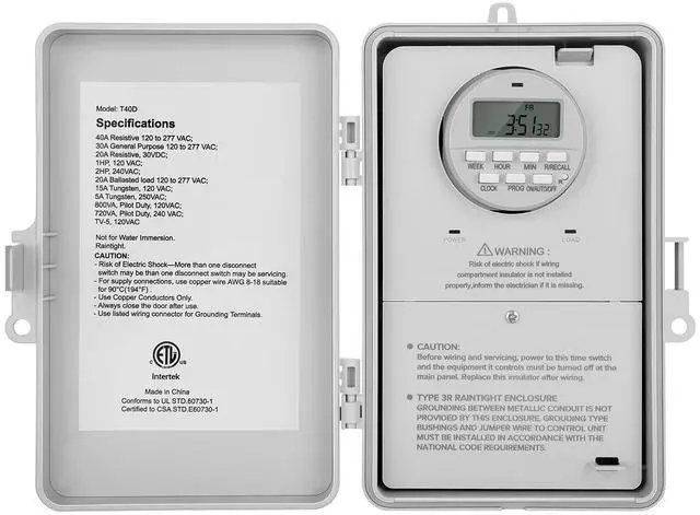 120-277VAC, 40-Amp Resistive, 2HP Heavy Duty Timer Controls and Schedules Large Load Devices