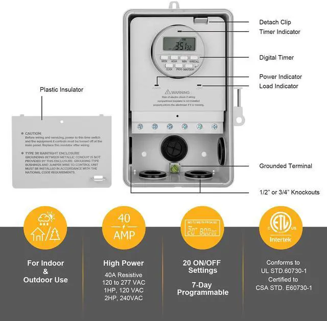 Suraielec Outdoor Indoor 7-Day Programmable Digital Timer Switch Box for Powerful Electrical Appliances