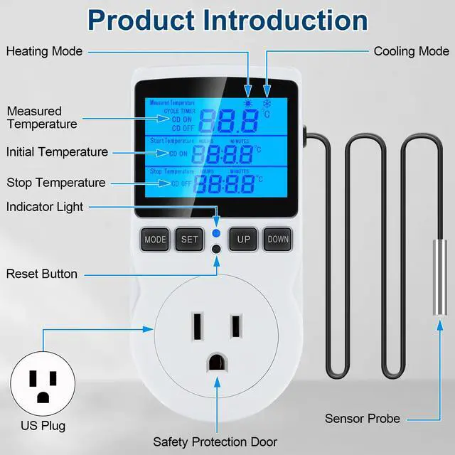Reptile Thermostat Controller Day Night Timer 110V Temperature Controlled