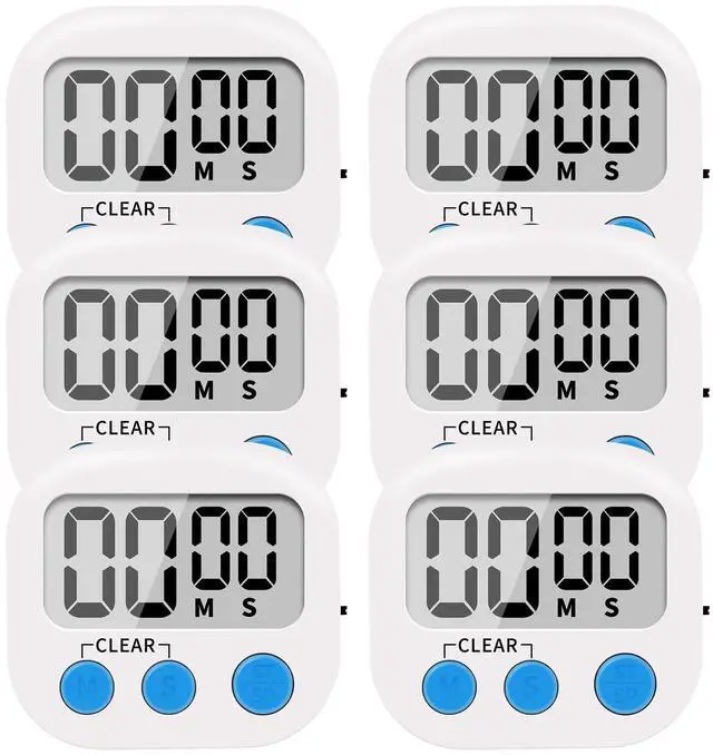 6 Pack Small Digital Kitchen Timer Magnetic Back and ON/Off Switch, Minute Second Count Up Countdown, White