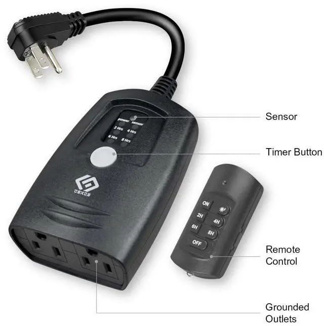 OSKOS Remote Control Grounded Photocell Timer can be operated via the included transmitter from up to 100 ft (30.48 M) away or manually press the button on the Timer to select desired function. It gives you two outlets where you need them most so you can easily power up your lights and devices and keep them running smoothly. The OSKOS Outdoor Remote Control Grounded Photocell Timer with a built-in photocell sensor so you can ensure that your lights come on every day at a specific time relative to sunset or from dusk all the way until dawn. Multi-Setting timer from 2, 4, 6 or 8 hours or dusk to dawn. It is great for holiday decorations and general use. For outdoor use.