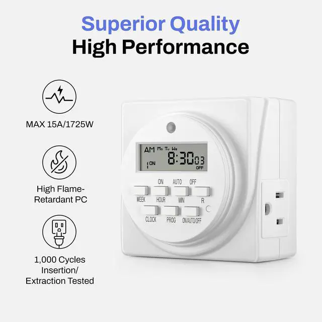 Automate your home's lights, fans, and appliances with the BN-LINK dual-outlets digital timer. Just set your schedules and go, and you never turn on/off your lights manually ever again. Use the timer to automate your garden, adding convenience and encouraging the productive growth of your plant.